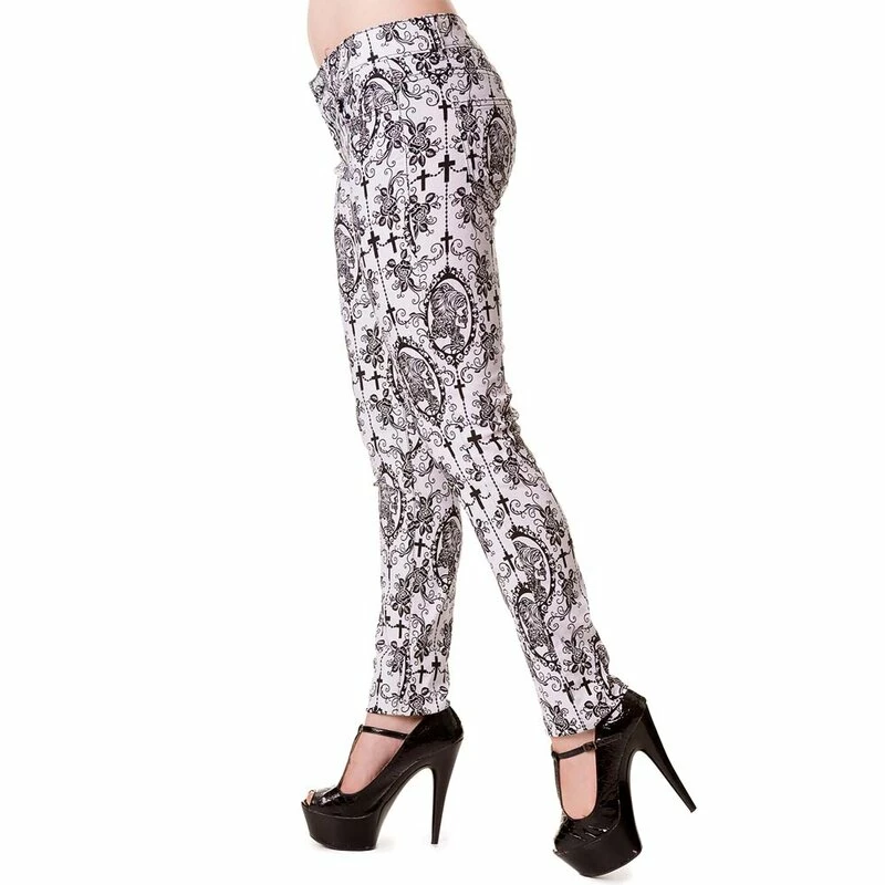 – all-over print with roses, crosses and victorian skull portraits